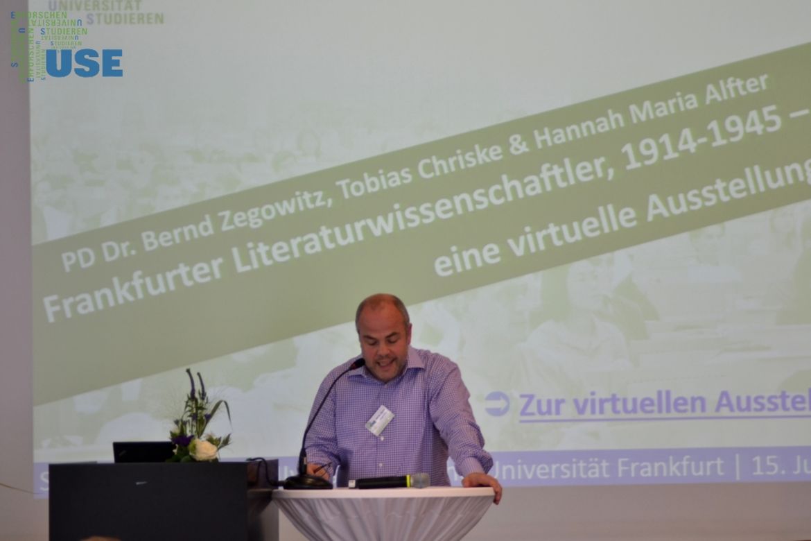 Während zweier Semester – zwischen April 2013 und Februar 2014 – hat sich eine Gruppe von Studentinnen und Studenten der Frankfurter Romanistik, Germanistik und Anglistik, moderiert von zwei Lehrenden, intensiv mit dieser Geschichte der Universität Frankfurt beschäftigt. Die Teilnehmerinnen und Teilnehmer des Lehrforschungsseminars haben einzelne Forscherbiographien von an der Universität Frankfurt zwischen 1914 und 1945 tätigen Literaturwissenschaftler rekonstruiert (z.B. mit Hilfe des Universitätsarchivs, der Bestände der Universitätsbibliothek oder digital zur Verfügung stehender Medien). Daneben haben viele von ihnen in Essays einzelne Aspekte der intellektuellen Biographien von Frankfurter Literaturwissenschaftlern näher beleuchtet und sich mit Fragen der Präsentation von Forschungsergebnissen intensiv beschäftigt. Die Ergebnisse werden im Rahmen einer virtuellen Ausstellung präsentiert. Der Vortrag gibt einen Einblick in die Konzeption und den Aufbau der virtuellen Ausstellung und stellt einen der Literaturwissenschaftler exemplarisch vor.